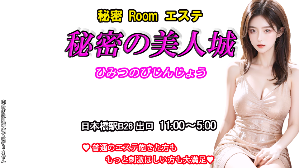 日本橋に新オープン・秘密の美人城♥エリア最高級・豪華個室エステ♥・女の子全員20代・30代前半と、美人揃い・恋人感覚の極上濃密な包み込む優しさ・きめ細やかなおもてなしをご体感をで、大満足のエステ時間を